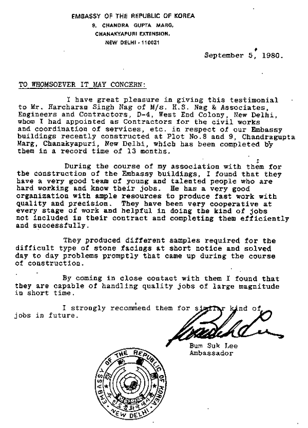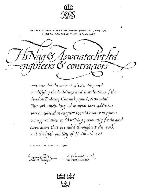 Following are the Certificates of Awards received by Mr. Harcharan Singh Nag (Managing Director - H.S. Nag & Associates Pvt. Ltd.):